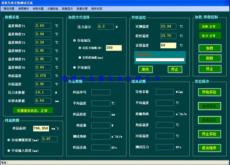儀器特點(diǎn):自動(dòng)加壓,自動(dòng)測(cè)厚,實(shí)驗(yàn)全自動(dòng)控制。6點(diǎn)溫度梯度檢測(cè),提高測(cè)試精度??蓹z測(cè)不同壓力下熱阻曲線,采用優(yōu)化的數(shù)學(xué)模型,測(cè)量材料導(dǎo)熱系數(shù)和熱阻以及界面處接觸熱阻等。